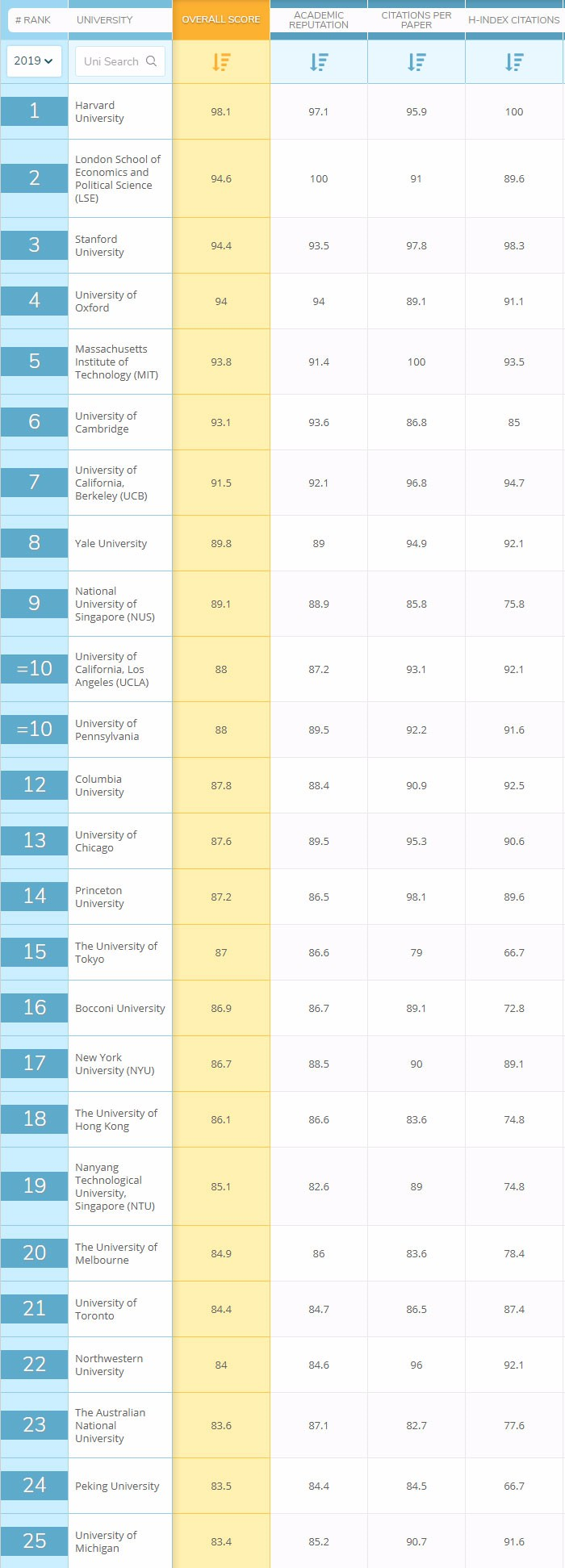 社科和工程一直是美国大学的天下,也是中国留学生的热门,新加坡国立大学差点被挤出前10,而墨尔本大学差点被挤出前20。