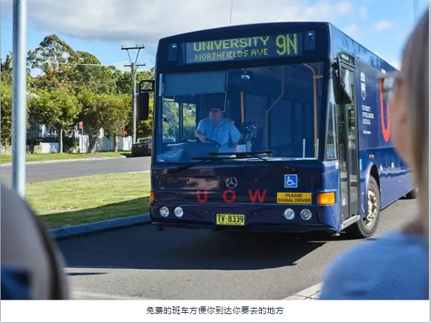 我选择在伍伦贡学习的主要原因之一是大学里的班车服务。即使没有开车上大学,也能在城市里相对轻松地旅行,这一点是非常重要的。到目前为止,我还没有遇到任何问题。搭乘穿梭巴士出行非常方便,而且完全免费,无论你是想去购物,去海滩或者是约会,只需下载一个UOW 班车APP就可以了。