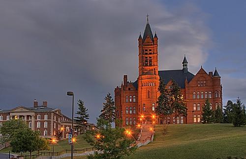 雪城大学位于美国纽约州中部的锡拉丘兹,素有CENTRAL NEW YORK之称,治安良好,环境优美,湖光山色,是十分美丽的都市。属于大陆型气候,四季分明,"逢春飘花,临夏荫浓,城秋枫红,瑞雪隆冬"是最佳写照。因受湖区气候效应的影响,锡拉丘兹在美国以降雪量丰富著称,因此Syracuse University又被美国人亲切地称为雪城大学,这便是" 雪城大学" 名称的由来。