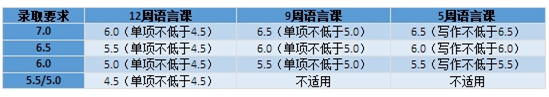 五、本科预科,BA FineArt (Extension Degree)以及硕士预科如果未达到录取要求只能申请12周语言课,要求如上图。