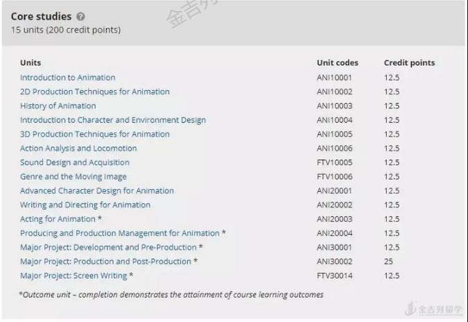 以选修课程( Elective Units)为例(如下图),动画学并不仅仅是媒体影视技术与绘画美工的简单叠加, 成为一名优秀的动画人才,不仅需要有过硬的技术,还需要掌握一定的物理学定律、自然科学等相关知识。 这样,动画在表现过程中,才能够更加流畅,且拥有高度的现实感。