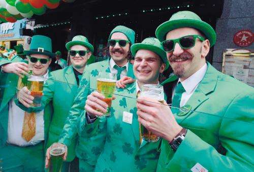 “戴绿帽”在中国常常是一件很糗的事情,但爱尔兰的男人就喜欢带绿帽子,尤其是在3月17日这一天,举国上下都佩戴关于绿色的一切。因为这一天是爱尔兰的“国庆节”即圣帕特里克节(St. Patrick’s Day)。
