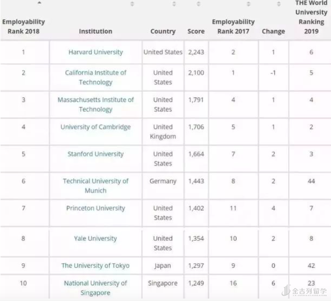 根据法国人力资源咨询公司Emerging和就业研究中心Trenence的数据,通过对22个国家2500名招聘经理进行在线调查 (参与调查的公司通常都拥有5000多名员工,每年会招聘50多名年轻毕业生) ,得出了2018年度的泰晤士全球大学就业力排行榜。