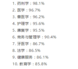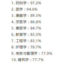 2018研究生毕业生全职工作就业率Top10专业