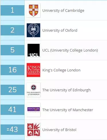 英国大学作为世界高等教育的发源地,在教育学学科排名上面表现自然不俗。伦敦大学学院位列世界第一,牛津大学位列世界第四,剑桥大学位列世界第五。