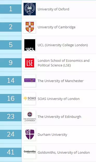 人类学世界大学学科排名的与解剖学与生理学世界大学学科世界排名排名相似,英国共有9所大学挺进TOP50。其中,英国牛津大学以及剑桥大学,伦敦大学学院分别位列世界第一,第二以及第五,表现亮眼。