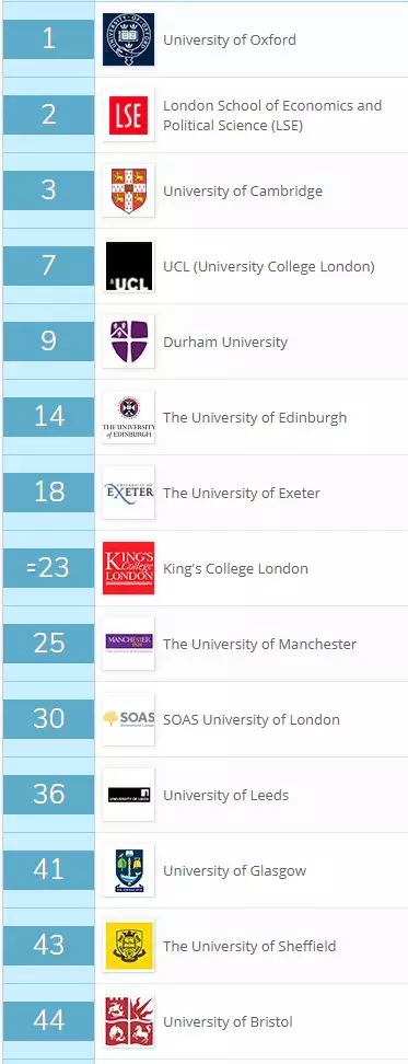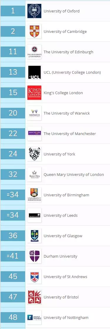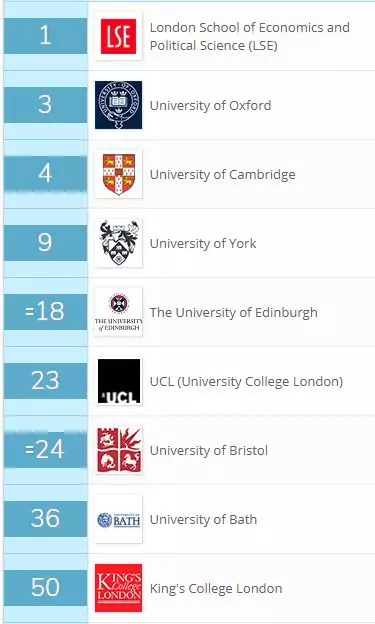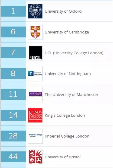 在QS世界大学的学科排名中,英国共有7所大学挺进世界TOP50。其中,英国剑桥和牛津大学, 伦敦大学学院分别位列世界第一,第二以及第五,表现亮眼。