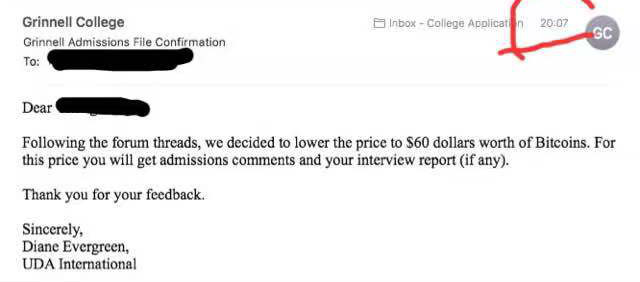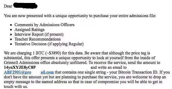 在RD放榜的进程中,收到来自学校的邮件无疑是最让人期待的事。如果邮件告诉你“只需1比特币(约$3971,笔者注),即可知道招生官对你的全部评价”,你会不会觉得像在梦境而不是现实?