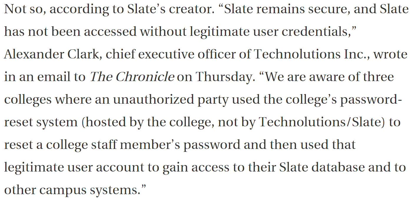这三家信息被泄露的学校都有一个共同点:他们都使用Slate来进行对applications的评估。