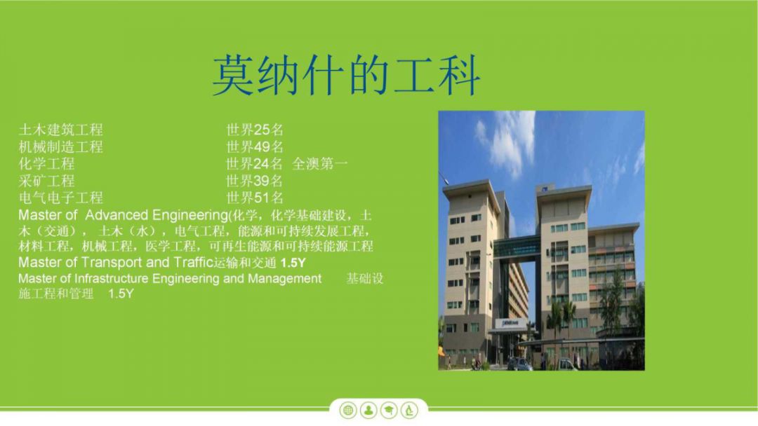 莫纳什的工科也比较热门,土木建筑工程、机械制造工程、化学工程、采矿工程、电气电子工程等专业申请的同学都比较多,这些专业的排名基本在世界前50之前。