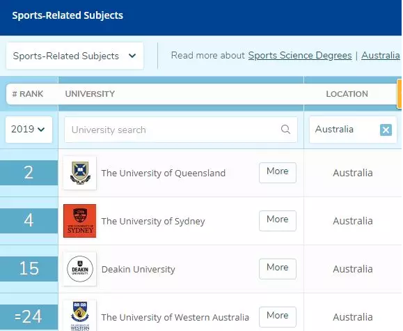 UQ运动相关学科位列澳洲第1,全球第2