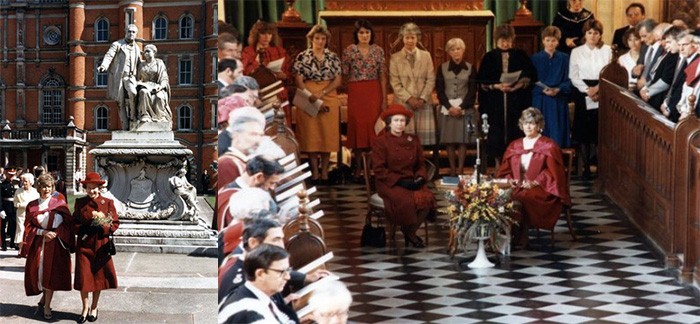 1986 年英国女王伊丽莎白二世又于该校 100 周年校庆之际主持了其与贝德福德学院( 1849 年成立)的合并典礼。