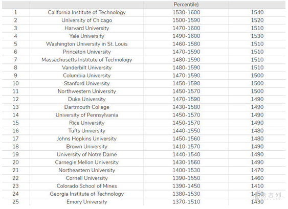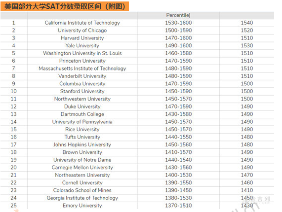 举个例子来说,范德堡大学公布中间分数段是1480-1590,意味着如果录取了1000名新生,按照其SAT分数从低到高排列,其中有250人低于1480,也有250人高于1590,中间的500人的分数是1480-1590。
