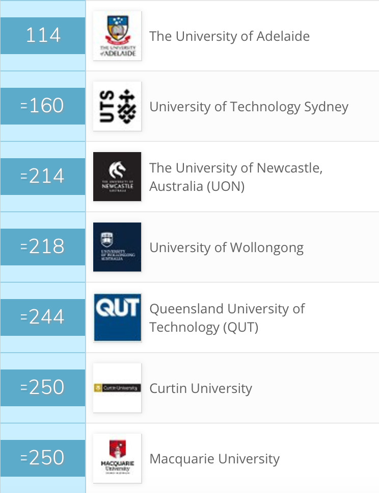 以下是在2019年排名中澳大利亚高校进入top100的名单: