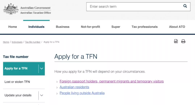 此外,工作前需要在税局(Australian Taxation Office, 简称ATO) 申请税号 (Tax File Number,简称TFN)。