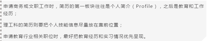 总之,越重要的、雇主越想看到的信息,越要放在简历靠前的位置。