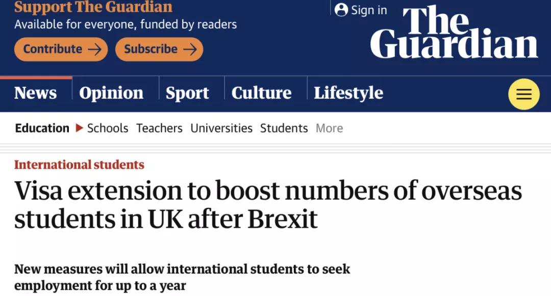 卫报新闻:英国脱欧后,签证期限延长以增加在英留学生数量