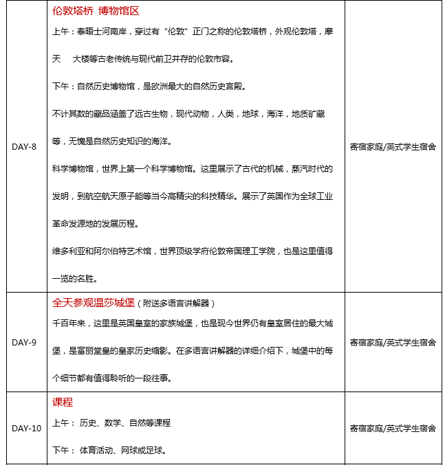 营区位于伦敦北部富人区,环境安全而优美,地铁40分钟到达伦敦市中心。寄宿英国家庭,每天校车接送。与英国家长一起生活,探索英国家庭文化差异,感受原汁原味的英国生活。