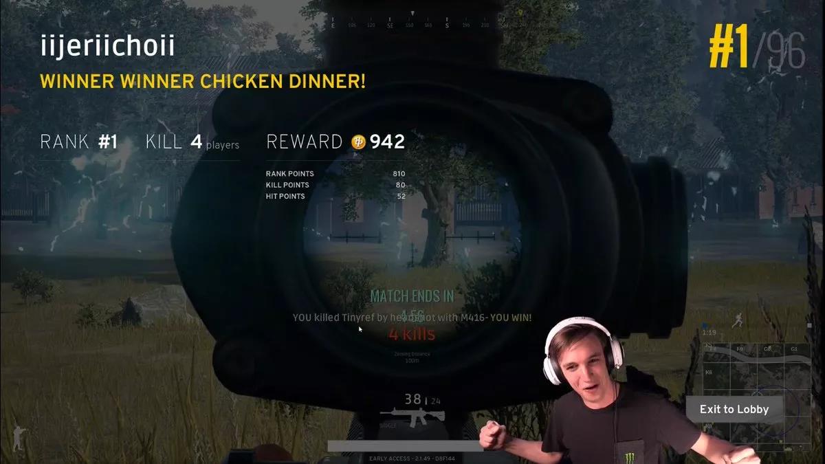 当你获得第一名的时候就会有一句台词出现:“winner winner,chicken inner”。直译过来,就是最近大火的一句网络语“大吉大利,晚上吃鸡!”