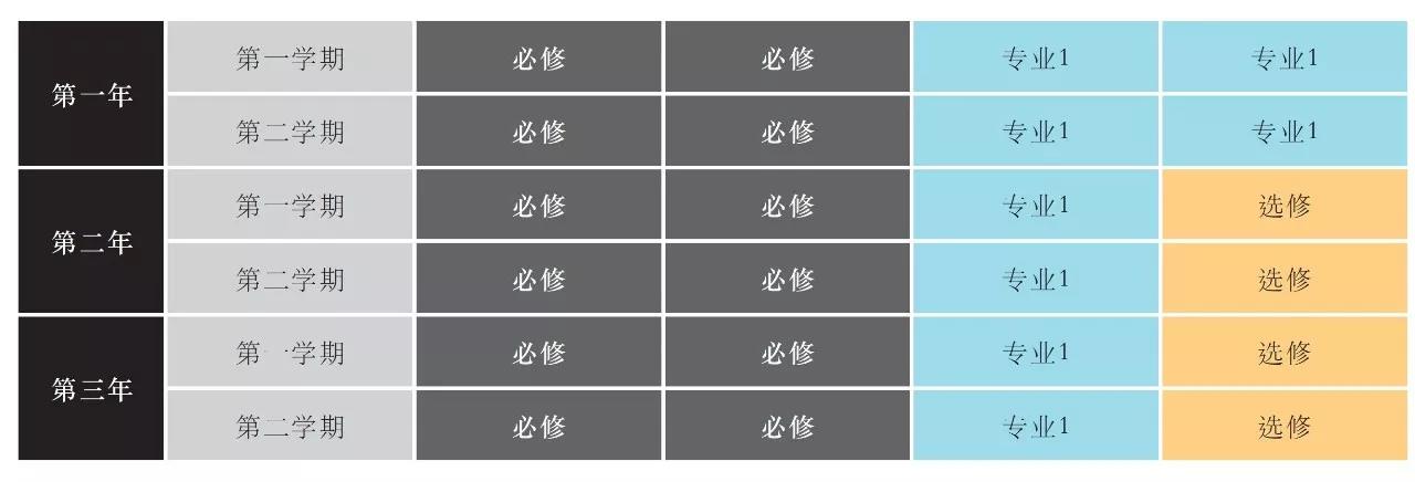 游戏与互动学位课程共要求学生完成24门课程。其中包括4门必修课程,8门专业课程,以及自选类课程。