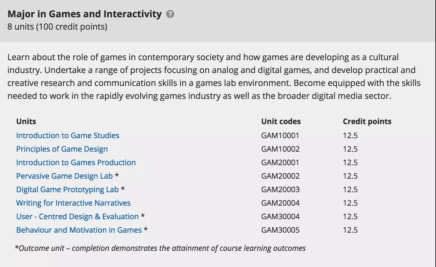 4门必修课程分别为:声音设计与采集;对象与环境的3D建模;游戏和交互项目1和游戏和交互项目2,旨在为学生奠定学位相关的基本技能和知识。