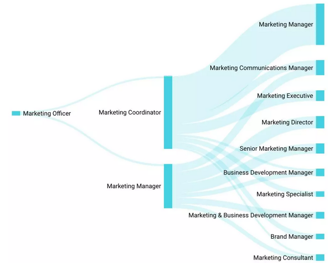市场营销专业的毕业生的行业发展一般从市场职员开始,通过成长与历练发展为市场协理或市场经理,并且可以在多个不同的市场专业领域进行发展。