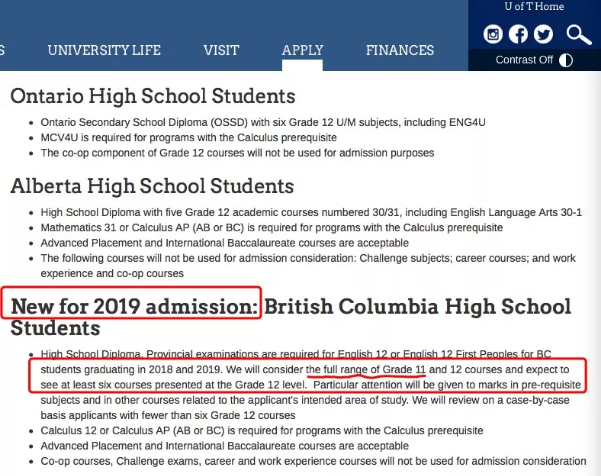 加拿大各大学官网上已经陆续发布了申请2019年秋季入学的录取要求。这几天注意到多伦多大学和UBC大学针对加拿大高中生的一些新规定。