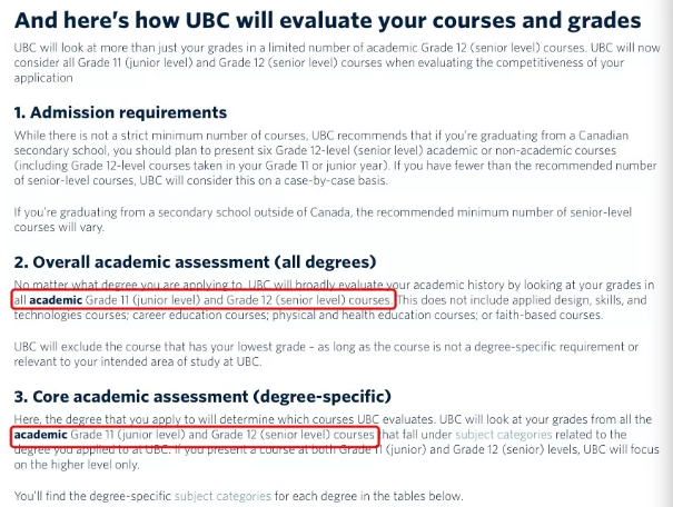 UBC大学也是明确了在评估申请时,会综合考虑11年级和12综合成绩。