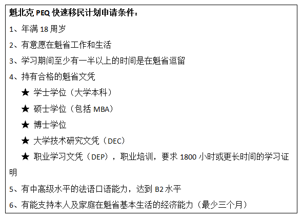 魁北克PEQ(Quebec Experience Class)快速留学移民项目,是魁北克移民局推出的旨在加快魁北克省当地留学生申请移民到魁北克的移民计划。该计划允许拥有魁北克留学经验的申请人只要在魁省学满1800小时,无需在加拿大找到工作,毕业后即可快速获得永久居民身份。