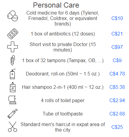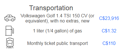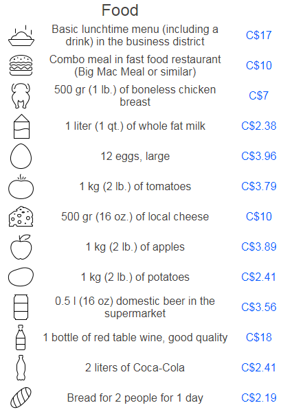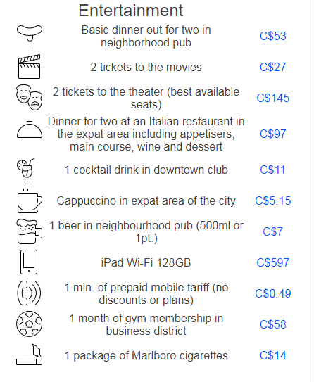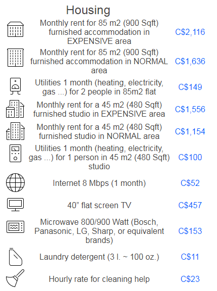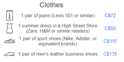 接下来我们来看看加拿大在衣食住行等方面的生活成本。