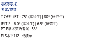 语言要求:本科托福75+ /雅思6.0;研究生托福80+ 雅思6.5+