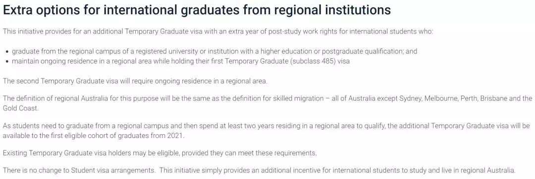 由于学生需要满足从“偏远”校区毕业并在“偏远”地区居住至少两年的要求,所以第一批学生群将从2021年起符合延长毕业生临时签证的申请条件。这意味着以下两类人群均可申请: