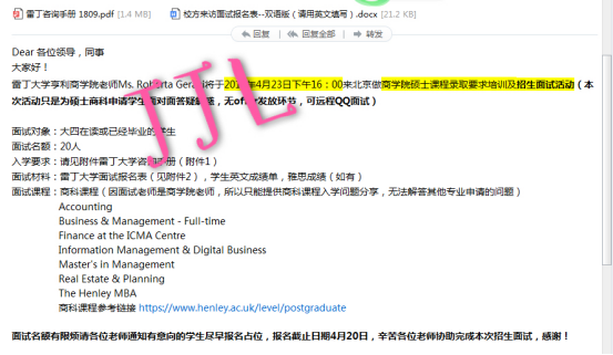 雷丁大学亨利商学院老师Ms.Roberta Geraci4月23日到访我公司,可以为硕士商科学生答疑解惑,感兴趣的同学尽快找我报名!!