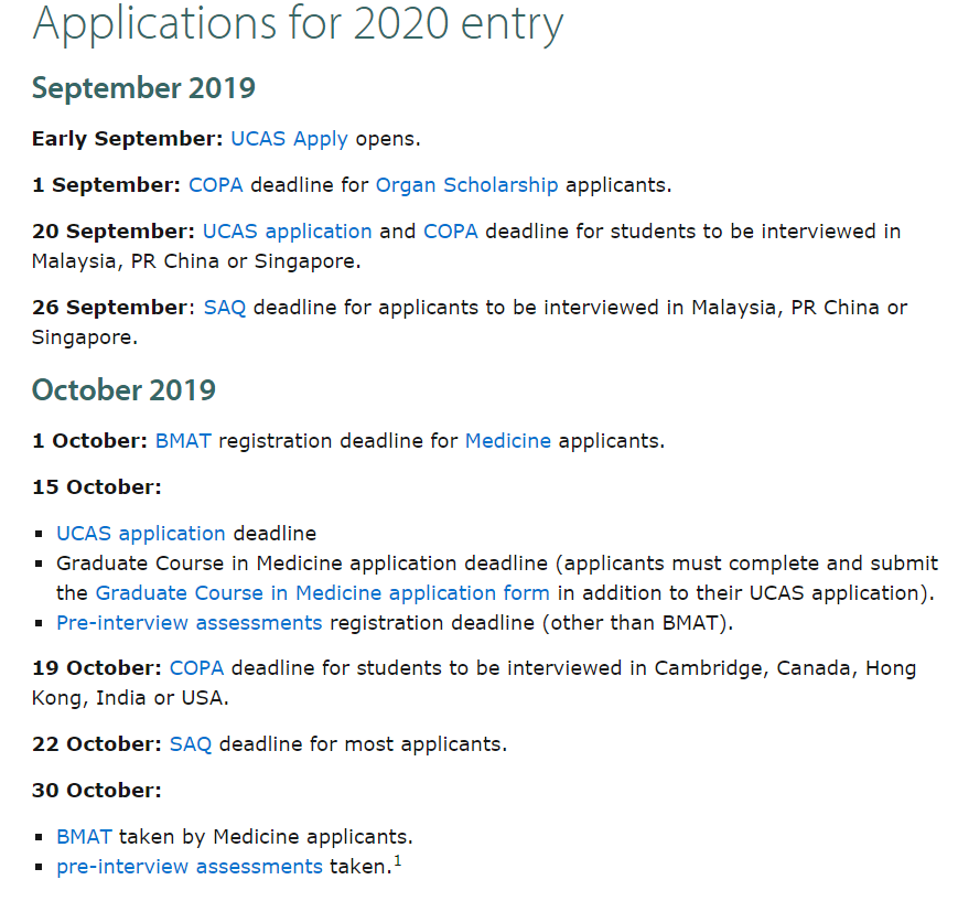 剑桥正常申请截止时间是10月15日,但如果希望在中国面试,那么就需要在9月20日之前提交UCAS申请。