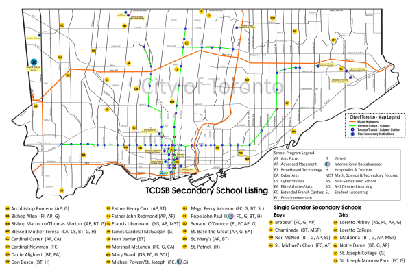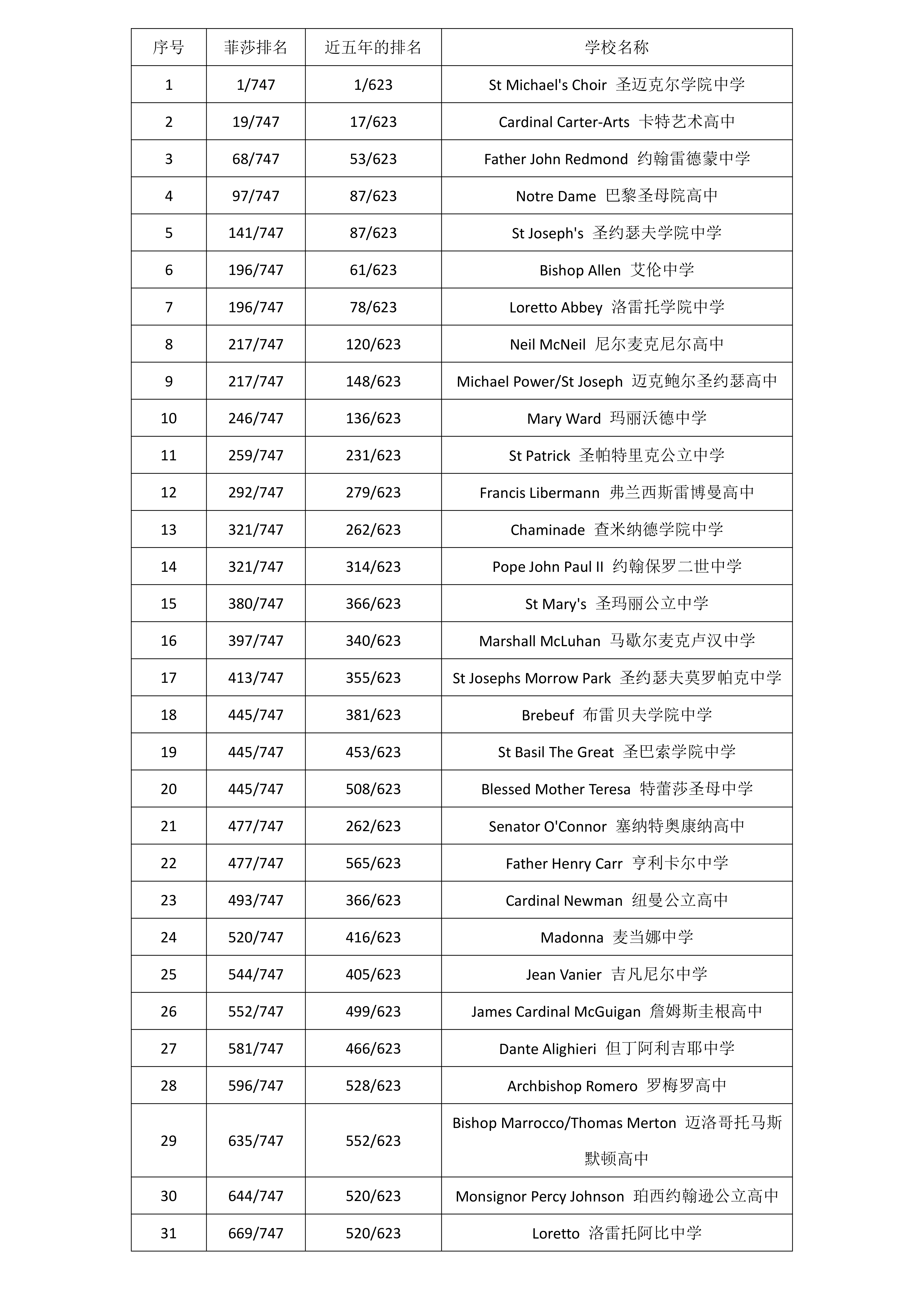 TCDSB旗下的学校列表:(依据菲莎研究所的排名进行排序)