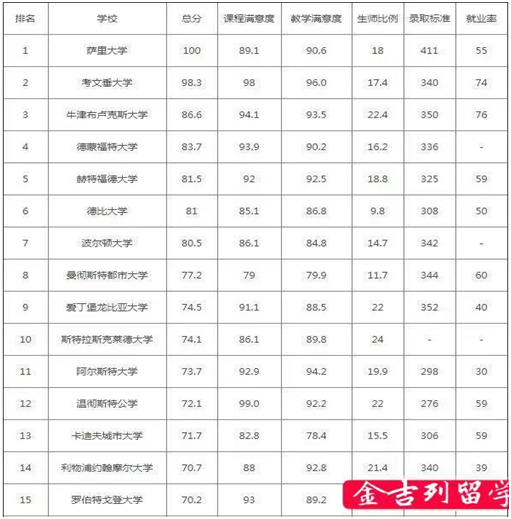英国酒店管理专业大学排名: