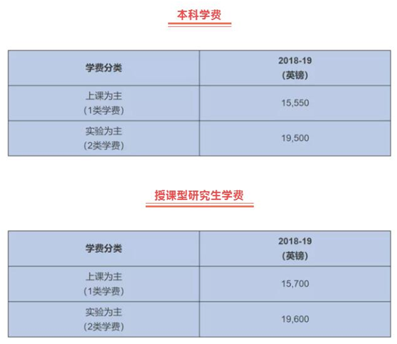 ( 1 )本科生:入学第一年 2500 英镑( 1 类学费)或 3000 英镑( 2 类学费)。