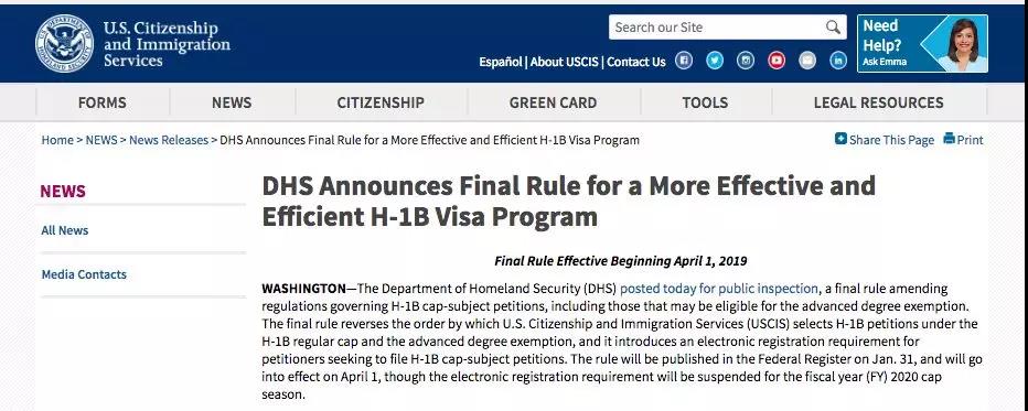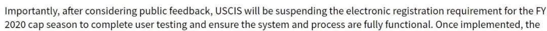 所以今年 2019 年 4 月这一轮 H1B 抽签将暂不执行,预计 2020 年的 H1B 申请开始执行电子注册。