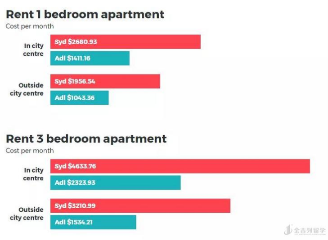 澳洲热门留学城市(悉尼为例)&阿德莱德每月租房开支对比