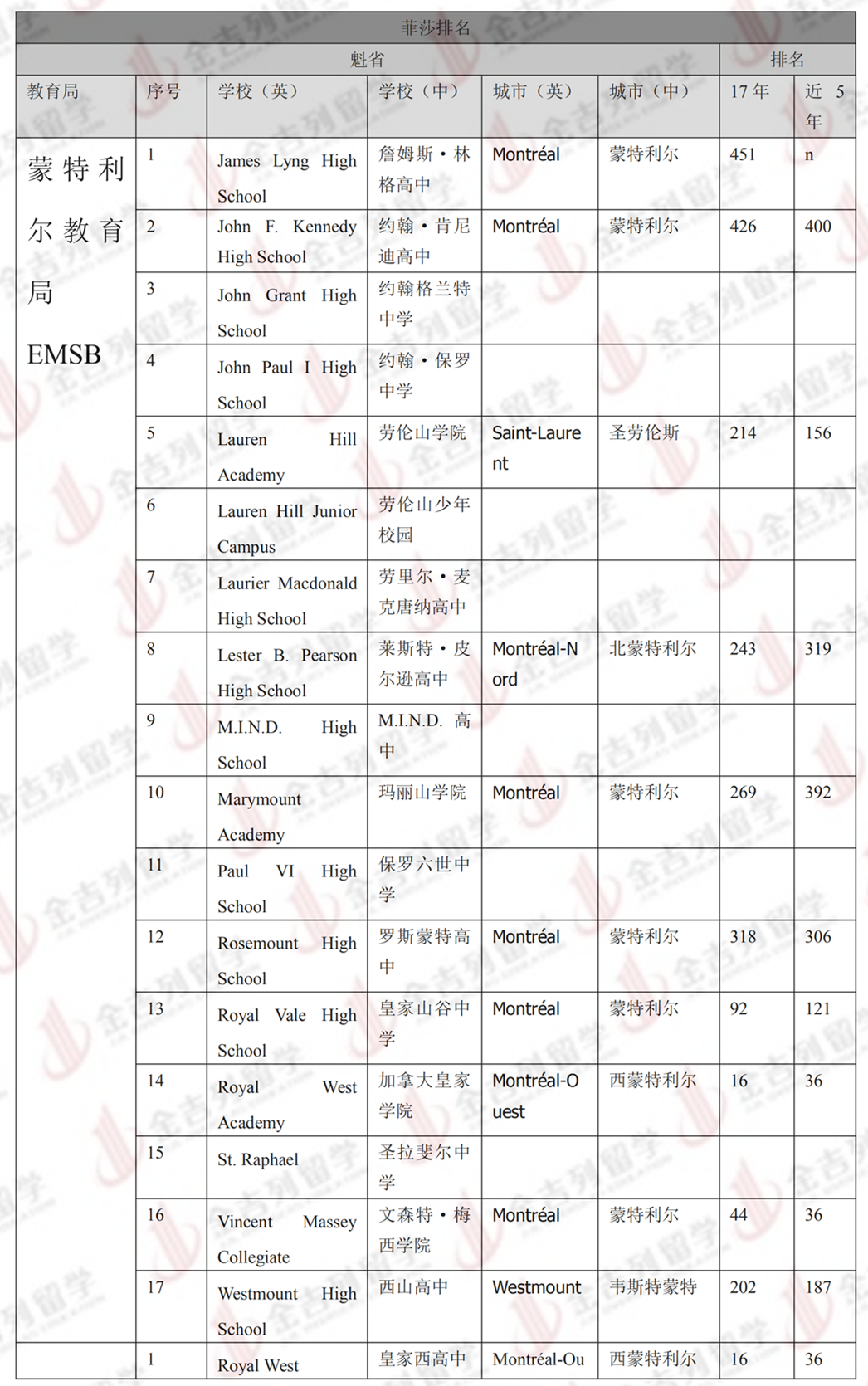 今天给大家介绍的是 魁北克省和阿尔伯塔省 公立学校的排名情况。(注意:高中留学选校,合适最重要。菲莎排名仅供参考。)