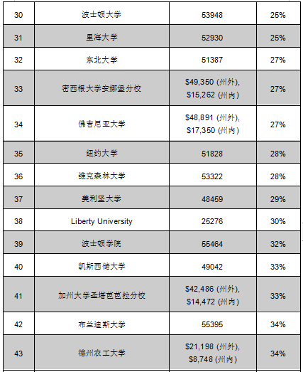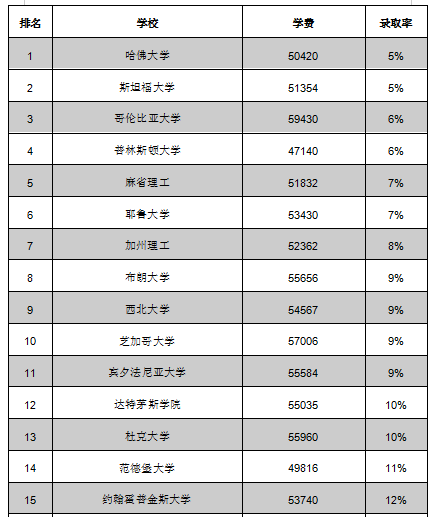 美国有近4000所院校和大学低至本科、高至博士的学位课程,这一宽泛的选择意味着每一个人都可以在美国找到他所需要的学习项目。虽然美国有这么多院校,但是的名校对于学生的选择把控也是很严格的,学生想要去名校的读书,各个学校的录取率也是需要考虑的一部分。接下来咱们来看一看最新公布的美国TOP80的院校的录取率的院校: