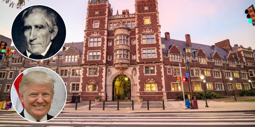 第9任美国总统,也是执政时间最短的总统William Henry Harrison,任期:1841年; 现任美国总统,第45任特朗普 Donal Trump任期:2017年至今,本科先在福特汉姆大学就读,后转学至宾大。