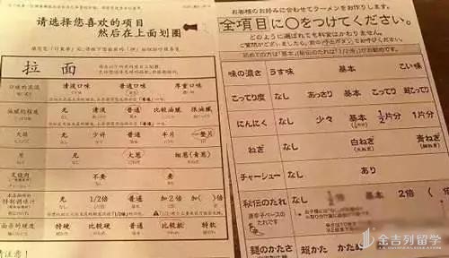一蘭拉面还有一个好玩的地方,那就是吃拉面之前要填表,你要什么口味,要多辣,要不要蒜,要不要葱,要不要加料,面要多软,全都可以自选。这个表格还有中文、日文、韩文、英文等多种语言选择。