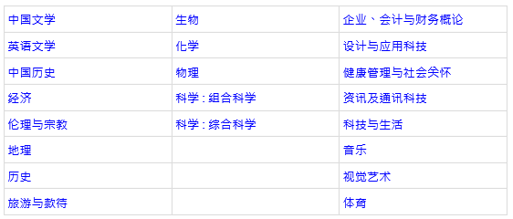 选修科目则需从 20个高中选修科目、应用学习科目以及语言科目中选择。具体科目如下: