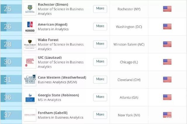 2018 年美国大学 BA 专业世界排名如下图所示: