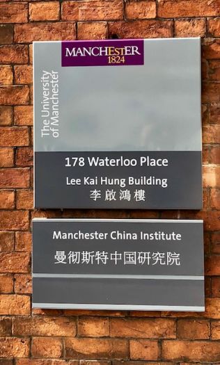 图: 曼彻斯特中国研究院李启鸿楼门牌