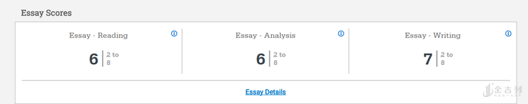 分数范围从6到24分。最高的原始分是44分;这部分是需要额外缴费的,申请者可以选择不考作文。