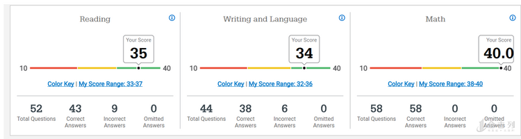Reaing和Writing 计分原则是分别统计Correct Answers(正确答案)、 Incorrect Answers(错误答案)、Omitte Answers,通过Correct Answers(正确答案)的数量,与SAT原始数据表(RAW Score)对应分数乘以10再相加,成为该部分总分。