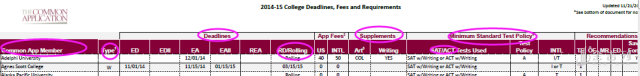 你可以通过查看网站上的申请要求表格,看到每个大学的基本申请要求,像申请截止日期,申请基本分数要求,申请费用等等。类似于这样: