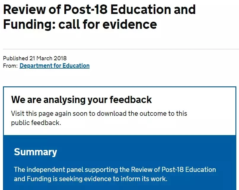 声明中表示,政府的《18岁后的教育与拨款审查》很快就要公布,其中包括学费削减的提议。